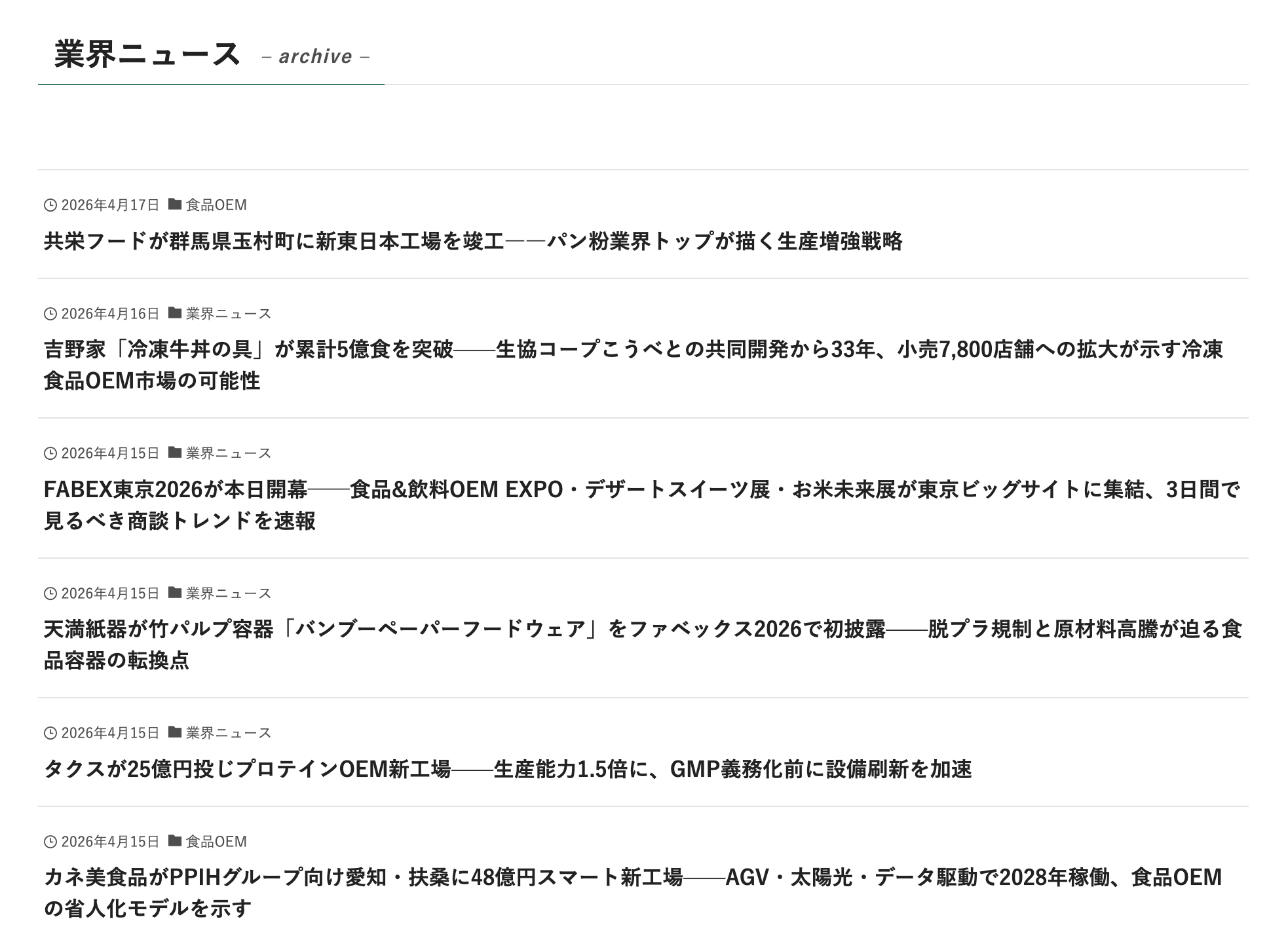 - 食品・OEMに限らず重要情報を掲載