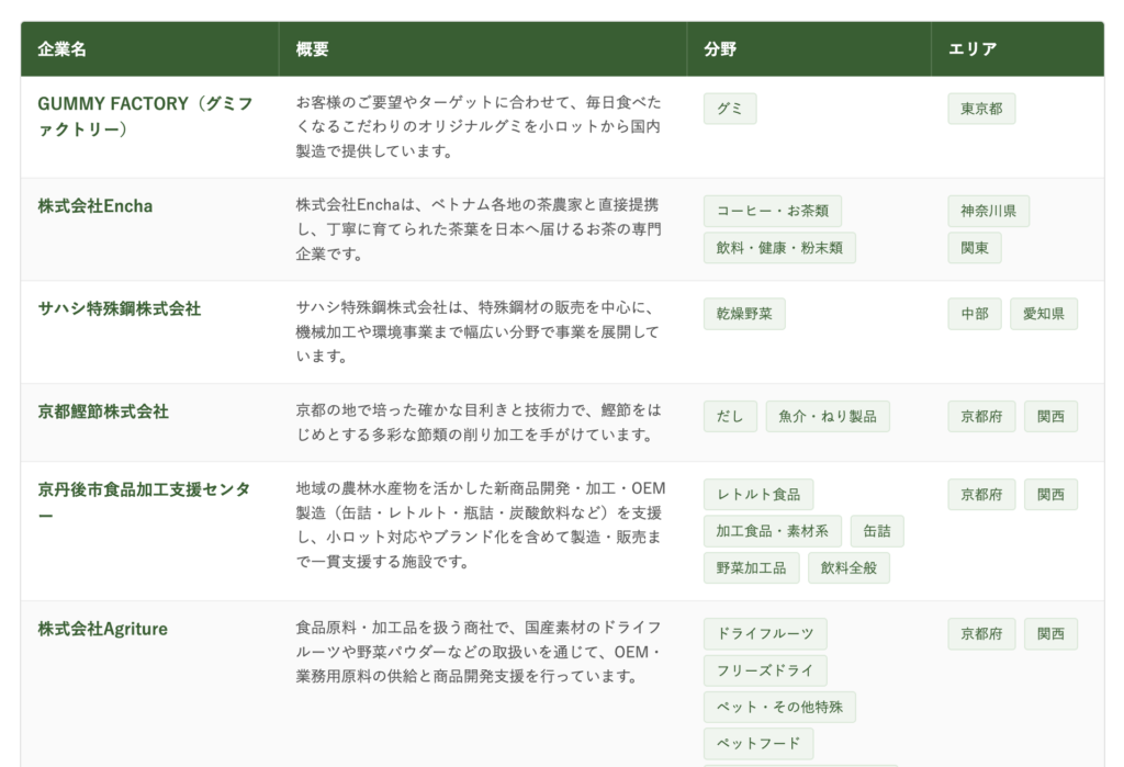 食品OEMメーカー様の事業内容や強みを、食品OEMの窓口の編集部が取材・構成して企業掲載ページとして公開します。設備・対応技術・最小ロット・実績などを商品企画担当者の検討目線で整理し、問い合わせにつながる情報設計でご紹介します。